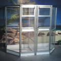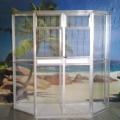 Diese Voliere fällt besonders durch ihre außergewöhnliche Form und ihr extravagantes Design auf.